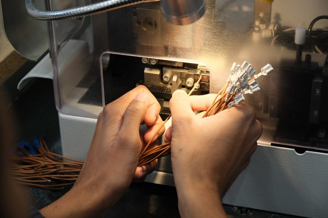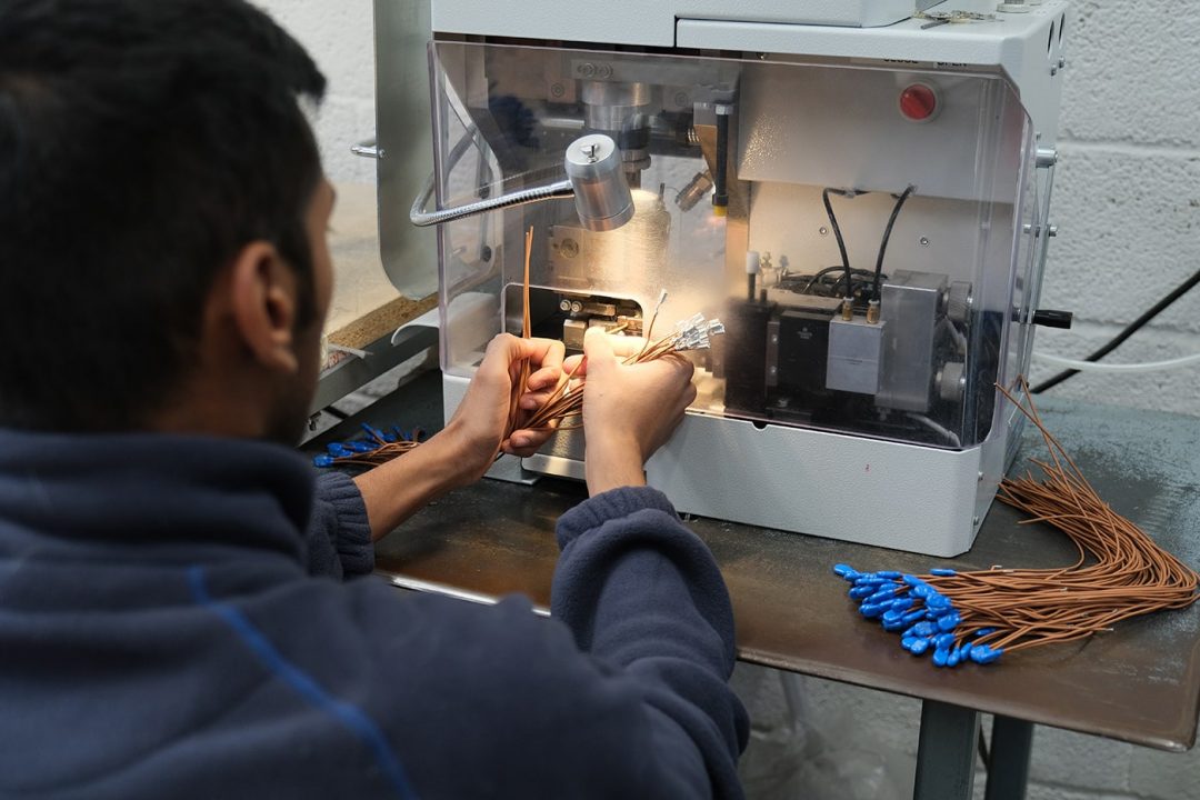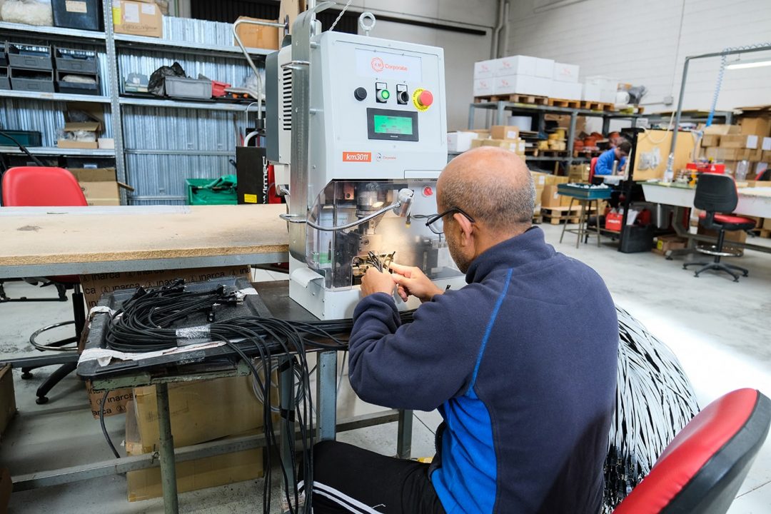 La macchina sviluppa una forza di aggraffatura di 20 kN, pari a 2 ton, e può lavorare su sezioni filo fino a 6 mm (AWG 10). Questa configurazione la rende adatta a numerose applicazioni di crimpatura in ambito industriale, dove servono precisione di esecuzione, buona capacità produttiva e controllo del risultato finale.